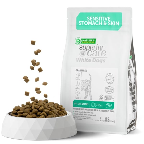 Dry food with white fish for adult dogs of large breeds with white coat 4.23 oz
