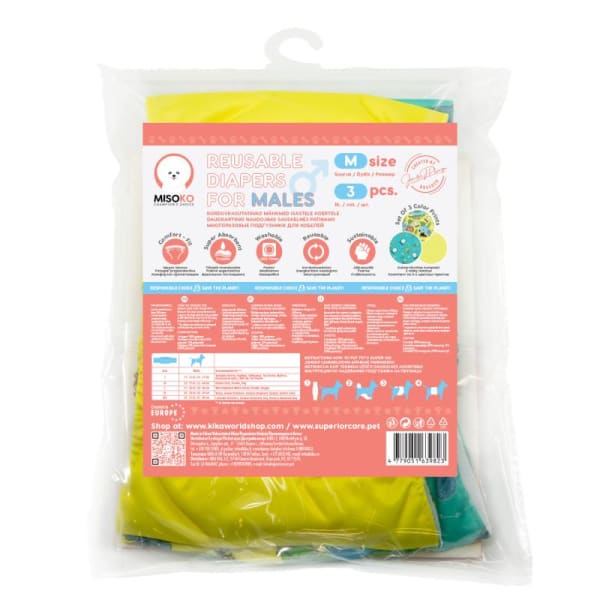 Reusable diaper set for male dogs, Treasure, 3 pcs. M